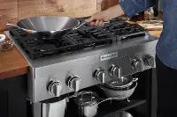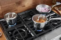 This gas cooktop offers power and precision to successfully sear, simmer, stir-fry and sauté. It features two 20,000 BTU Ultra Power™ Dual-Flame Burners for high and low-heat cooking, a 5,000 BTU Simmer & Melt Burner perfect for small saucepans, and three 15,000 BTU burners.