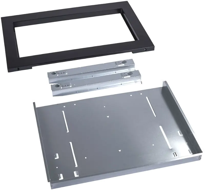 Package contains trim kit frame, bottom duct, 2 rails, short and long screws