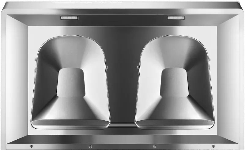 - Dual WhisPower Motors, equivalent to 850CFM, refreshes the whole kitchen in just minutes.