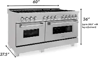 ZLINE 7.4 cu ft Dual Fuel Double Oven Range - 60"W DuraSnow Stainless Steel