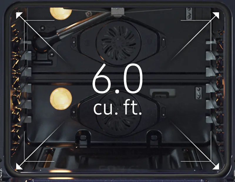This large 6.0 cu. ft. oven can fit multiple dishes at one time and can easily accommodate big casserole dishes and large roasting pans