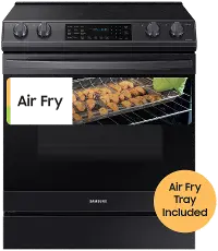 - Cooking just got healthier with new air fry mode and included air fry tray. Using little to no oil, you can quickly prepare your favorite fried foods right in your oven