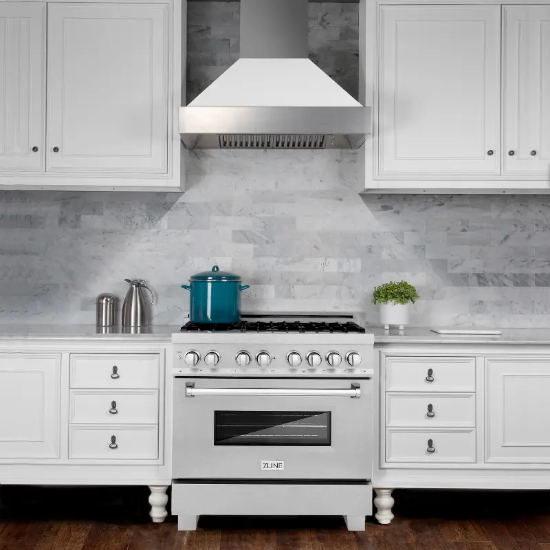 ZLINE 4.6 cu ft Dual Fuel Range - 36"W DuraSnow Stainless Steel 36 Inch