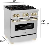 Enjoy a timeless look in your kitchen with a Stainless Steel finish paired with Gold accent knobs and handles, giving your kitchen an elegant, unmatched style