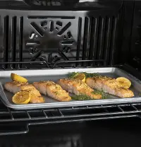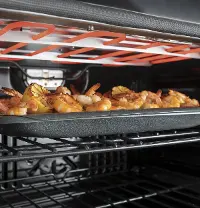 With two large 5.0 cu. ft. ovens, you will have plenty of room to cook all your dishes at the same time. You convection oven will cook your food faster and more even giving you the best results. In addition, you have a temperature probe that will monitor the cooking of your meat and automatically switches your oven off when it has reached the desired temperature. If you are cooking a prepackaged meal on the run, simply scan the barcode with your phone and the oven will automatically adjust your settings. Finally, you can save time by preheating and monitoring your cooking with the GE Appliances Kitchen app. You won't be sorry when you choose this GE double wall oven from RC Willey.