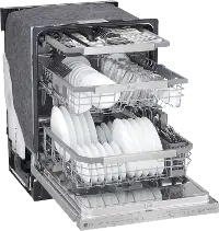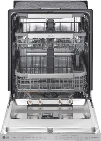 The LG TrueSteam and QuadWash technologies combine to clean dishes the first time and leave no trace behind. Steam at the start of the cycle penetrates caked-on food before four multi-motion spray arms rotate while spinning to reach every nook and cranny. A second blast of steam during drying helps eliminate water spots and the need for hand wiping. Even the dishwasher exterior is spotless, thanks to the fingerprint and smudge resistant PrintProof finish.