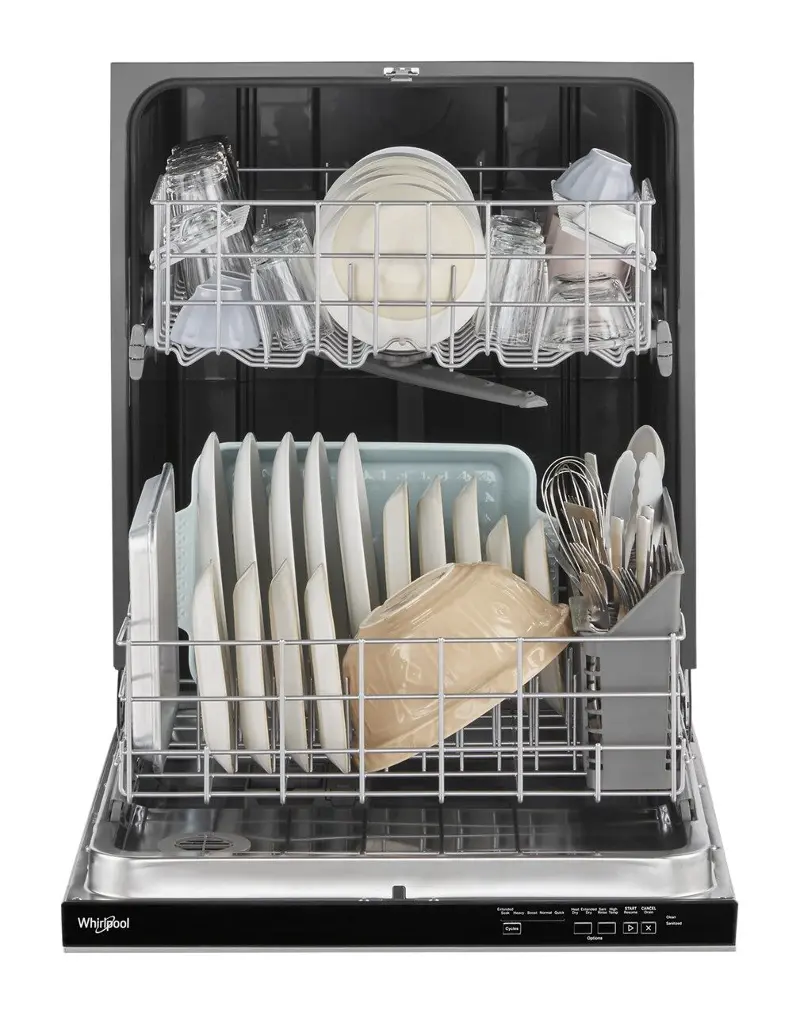 Whirlpool® dishwashers with the Rinse with Sanitize option are certified to remove 99.999% of foodborne bacteria and reach a final rinse temperature of over 150°F to sanitize dishes