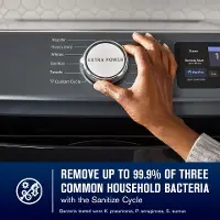 Remove up to 99.9% of three common household bacteria* with the Sanitize cycle, which uses extra-hot drying temperatures, providing you peace of mind. *Bacteria tested were K. pneumonia, P. aeruginosa, S. aureus