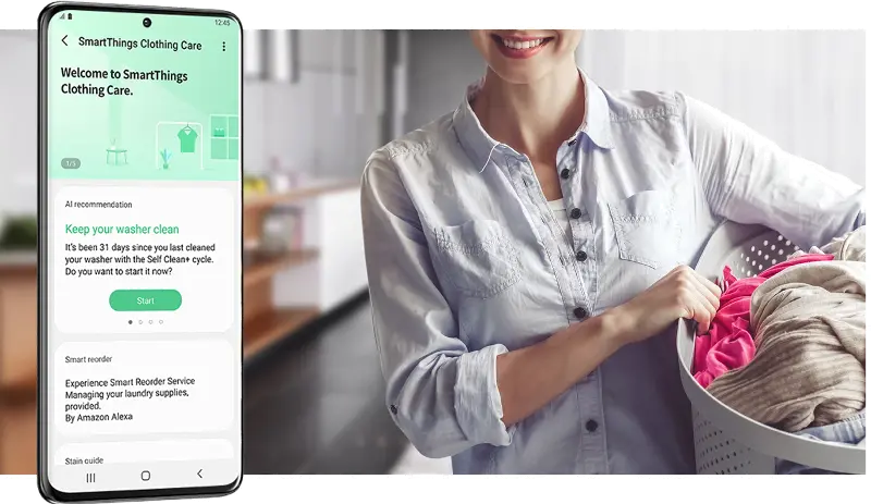 Easy troubleshooting from the convenience of your smartphone. Smart Care interacts with your washer and dryer to perform an immediate diagnosis and offer quick solutions