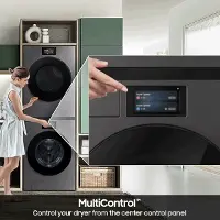 Control your dryer right from your washer when the units are stacked.* *Use of this feature requires a stacked Bespoke AI Home Front Load washer and dryer and Bespoke Front Load Stacking & MultiControl™ Combo Kit (SKK-RWG), which is sold separately.