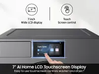 The intuitive 7" AI Home LCD touchscreen* gives you complete control over your front load washer, quick and easy access to settings, your favorite apps and more—all in one place. *AI Home LCD touchscreen on Laundry Combo accesses AI OptiWash+ sensing and Bixby based on AI-based algorithms. Wi-Fi connection and Samsung account required. AI OptiWash+ fabric sensing for 8 lb. loads and under; to prevent wear, wash like fabrics together, results may vary. Bixby utilizes deep learning models.