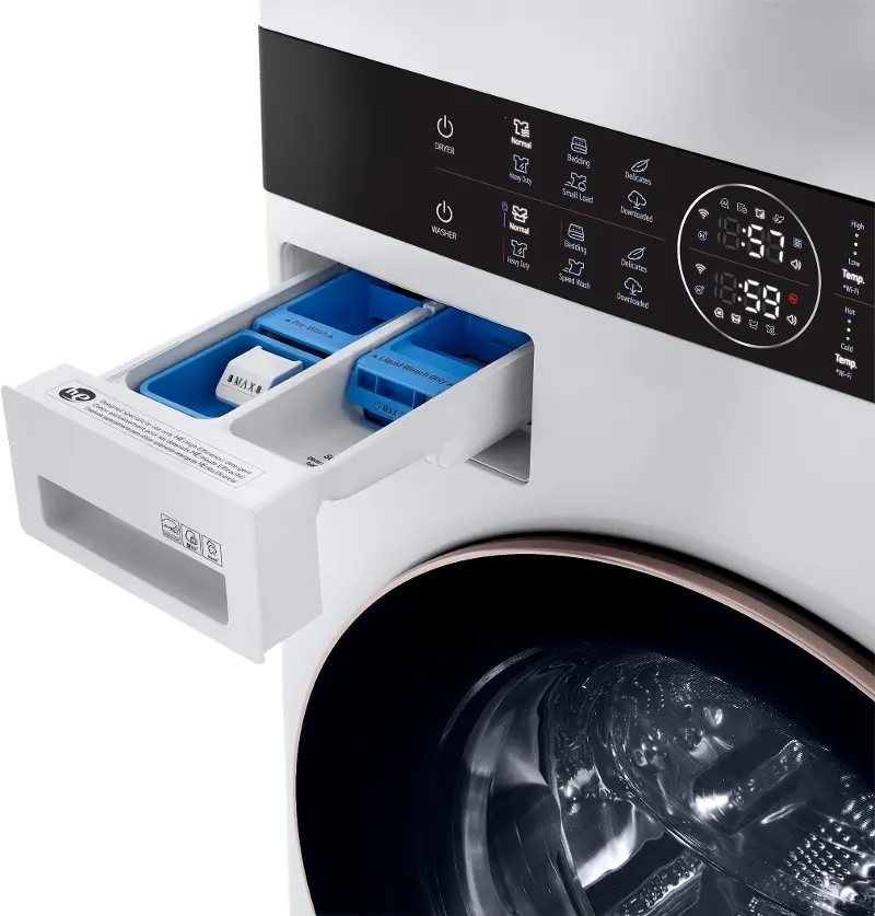 The center control makes it easy to access and the built-in AI sensors help take the guesswork out of your washing and drying. Ideal for smaller spaces, closets, and apartments.