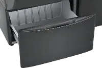 - Pedestal drawer offers a convenient area to store laundry essentials