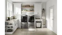 - Chrome design matches washers and dryers that have chrome and stainless-steel finishes