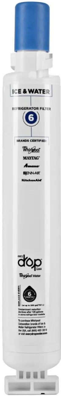 Not just in beverages, but for preparing meals, too. Our advanced generation of ice & water refrigerator filters from EveryDrop™ Filters are certified to reduce more contaminants with Triple Filtration™ Technology. Filter 6 reduces 9 contaminants, so you can feel reassured that you and your family are getting the most out of your water. Remember to replace your refrigerator filter every 6 months to maximize contaminant reduction. (Replaces 4396701)