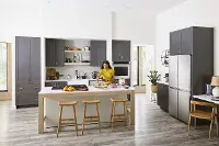 The counter-depth design allows this freestanding refrigerator to fit nearly flush with surrounding countertops to offer a built-in look and allow more room to move seamlessly in the kitchen.