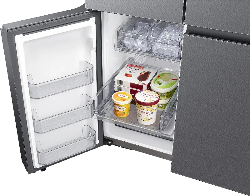 - Customize your lower-right storage space to be a refrigerator or freezer. With five adjustable settings, you choose what foods to store from fruits and vegetables to your favorite ice cream