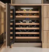 - Full-extension wine racks provide easy access to standard-size bottles, half bottles, and magnums without agitating others