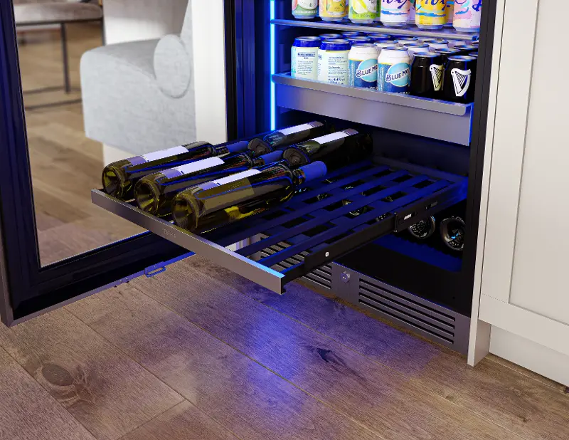 Full-Extension Black Wood Racks are thoughtfully designed to effortlessly glide out, clearing way to every bottle even those nestled in the back.