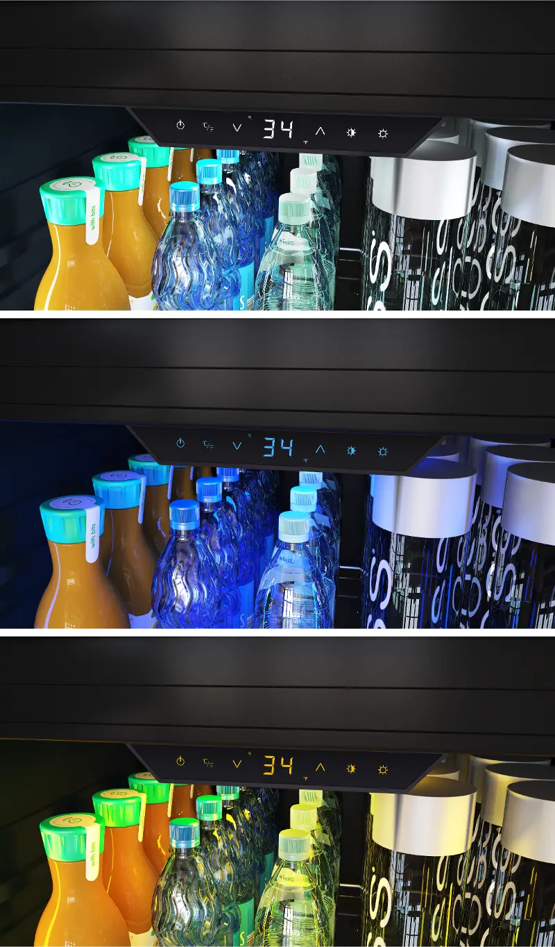 | Refrigerator Lighting | 3-Color LED Light Strips - Cloud White, Deep Blue, Amber |