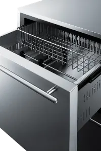The FF642D is sized with an easy-fitting 24" footprint. The front-breathing system allows built-in installation, while the fully finished cabinet also enables freestanding use. Complete stainless steel construction inside and out offers long-lasting durability with professional elegance. The drawers can be customized with overlay panels to match or accent existing cabinetry design. The stainless steel kickplate and sleek handles complete the look. Frost-free operation ensures minimum user maintenance inside the 3.4 cu.ft. interior. Two adjustable dividers make it easy to separate the drawer compartments into two or four zones to easily accommodate a variety of sizes. A sliding chrome basket offers added storage convenience, while the LED lighting makes it easy to view stored contents when loading or unloading both sections. Additional features ensure the unit is running at its best. These include a high-temperature alarm and an open drawer alarm. The digital thermostat makes it easy to manage the interior temperature, while a temperature memory function helps to recover all settings in the event of power loss. This model also has a Sabbath Mode Setting that disables certain electrical features during periods of religious observance. The FF642D can be used in home or commercial settings. This unit is ETL-S listed to NSF-7 standards and meets UL Commercial Standard 471.