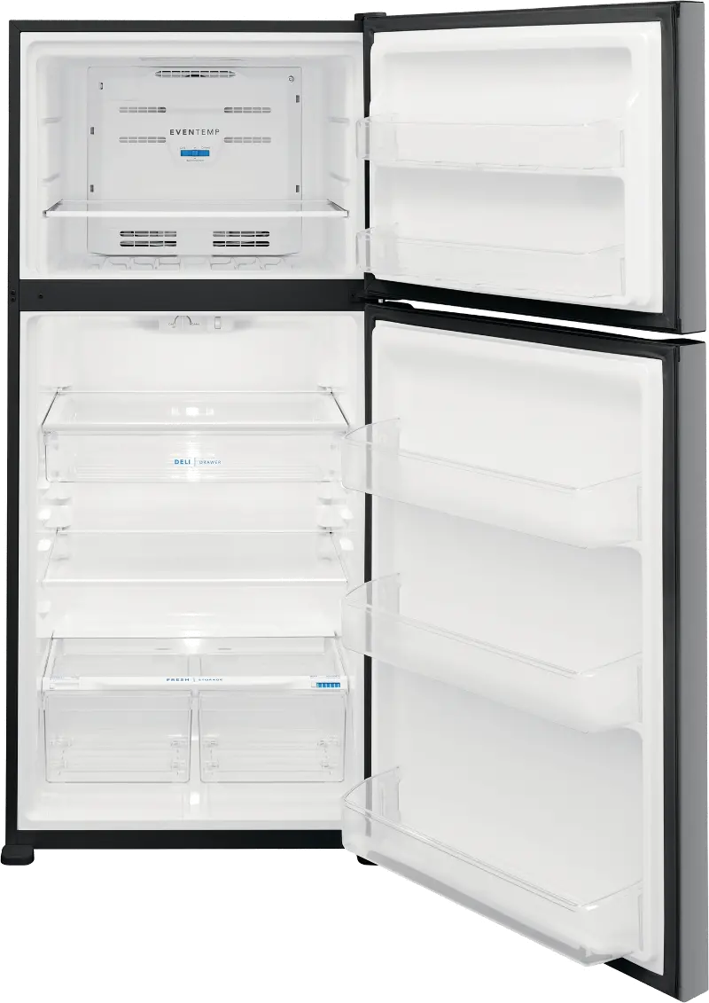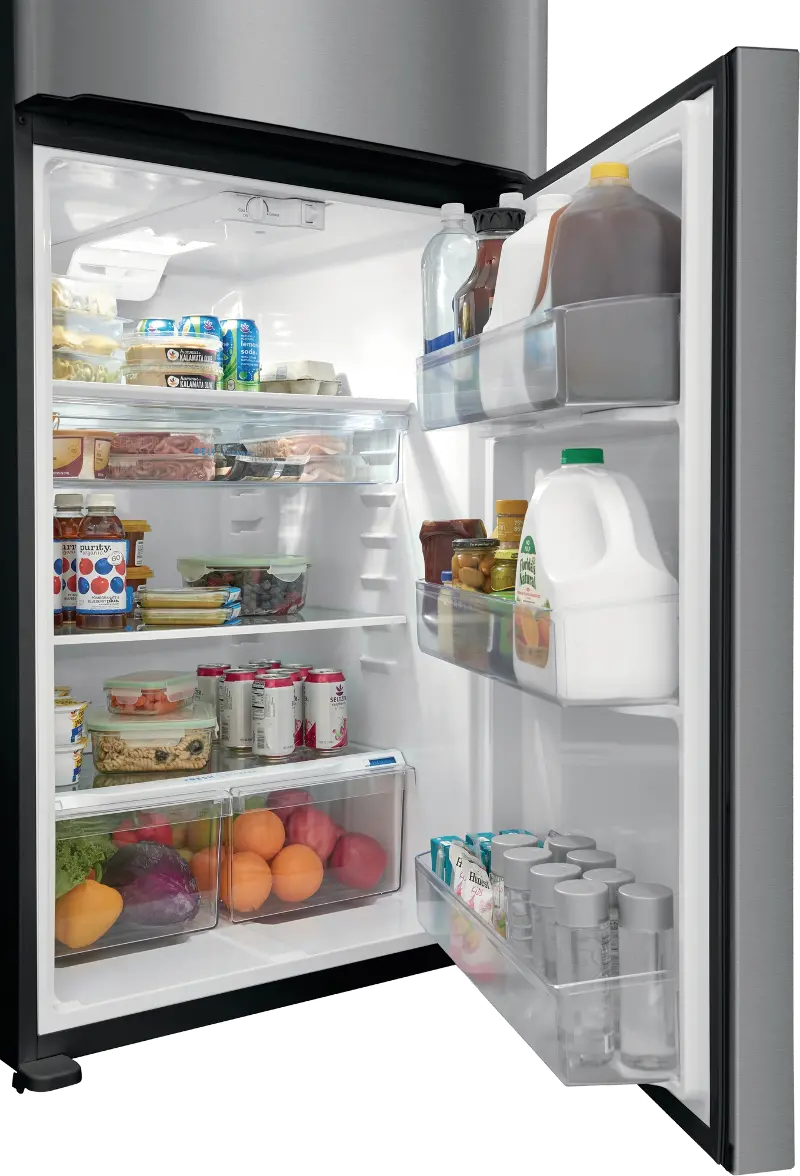 Available at RC Willey is this stainless steel Frigidaire top freezer refrigerator.