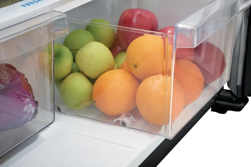 - Keep produce fresher longer, so you waste less and save money with the humidity-controlled crisper drawers with roller support