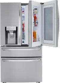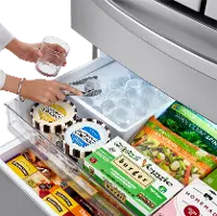 You will enjoy the quick and easy access to your most commonly used items with the door in door design and InstaView. The glass panel illuminates with two quick knocks, so you can see inside the easy access compartment without opening the door, reducing cold air loss to help keep food fresher longer. With the door in door access, you get convenience while saving energy by not having to open the whole fridge up.
