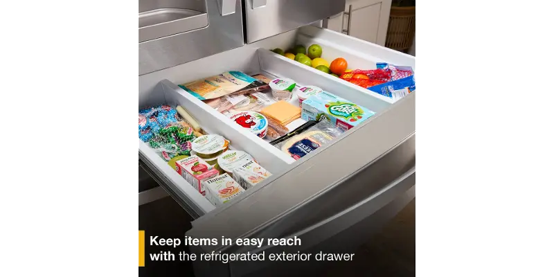 Keep items you use most within easy reach. An exterior drawer gives you an additional refrigeration space and lets you adjust temperature controls and dividers based on what you're storing.