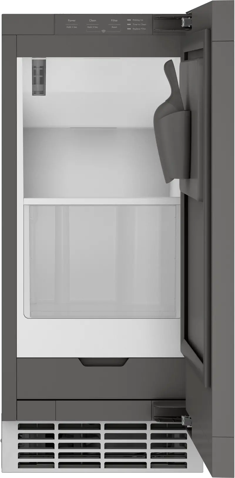 The ice storage bin is clear, so you can easily see how much ice you have on hand.