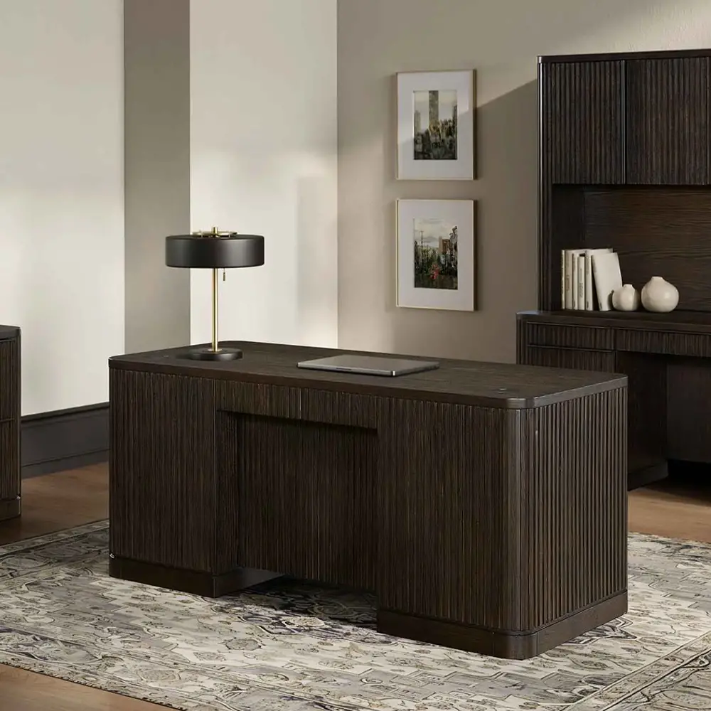 Modern furniture typically utilizes materials like metal, glass, wood, and leather. Metals such as stainless steel or brushed aluminum are common for legs and frames, while wood is often used for sleek, polished finishes. Glass surfaces add an open, airy feel, and leather provides a luxurious touch to seating options. These materials come together to create a streamlined, durable, and timeless look.