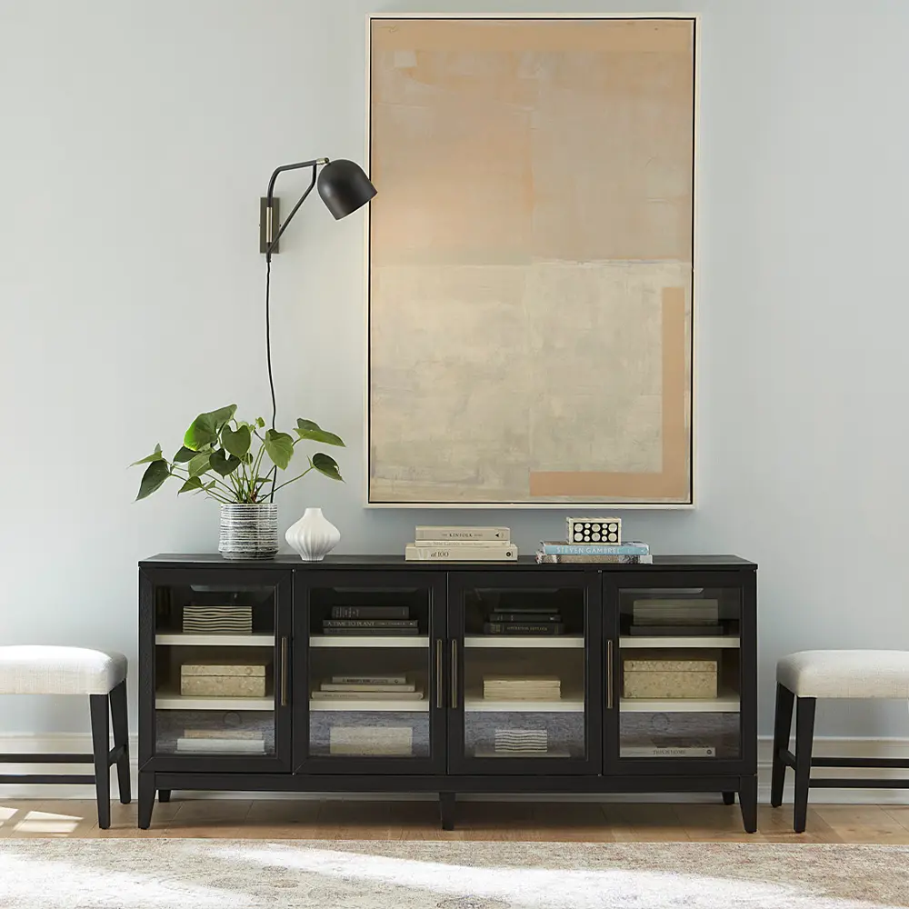 - Storage: A TV console or media cabinet in wood or lacquered finishes can provide functional storage while keeping the space feeling open and airy.