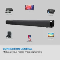 This slim 29” sound bar boasts room-filling, powerful sound, bringing you concert-like music, cinematic movies and shows for a full-on entertainment immersion. With RCA inputs, optical audio input, aux in, and Bluetooth capabilities, this sound bar is sure to impress.