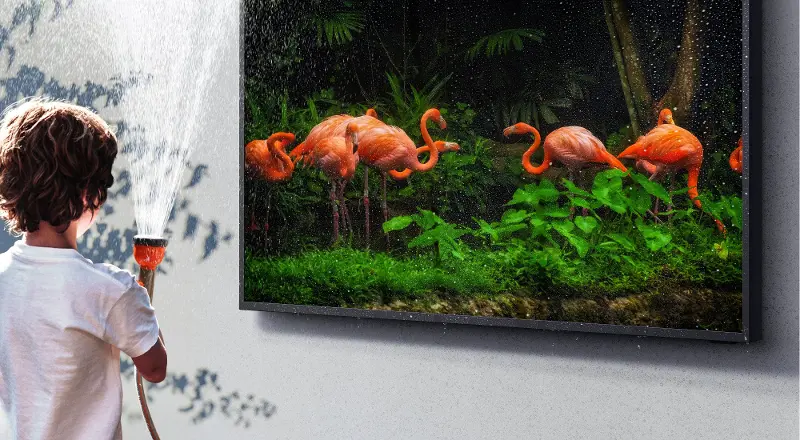 This weather-resistant TV delivers 100% color volume with Quantum Dot technology so you still get true-to-life picture quality even while being outdoors. Motion blur is minimized with Motion Rate 240 and anti-reflection enhances picture contrast even on sunny days. This TV is packed with Smart features too, so you can stream your favorite movie or mirror content from your phone.