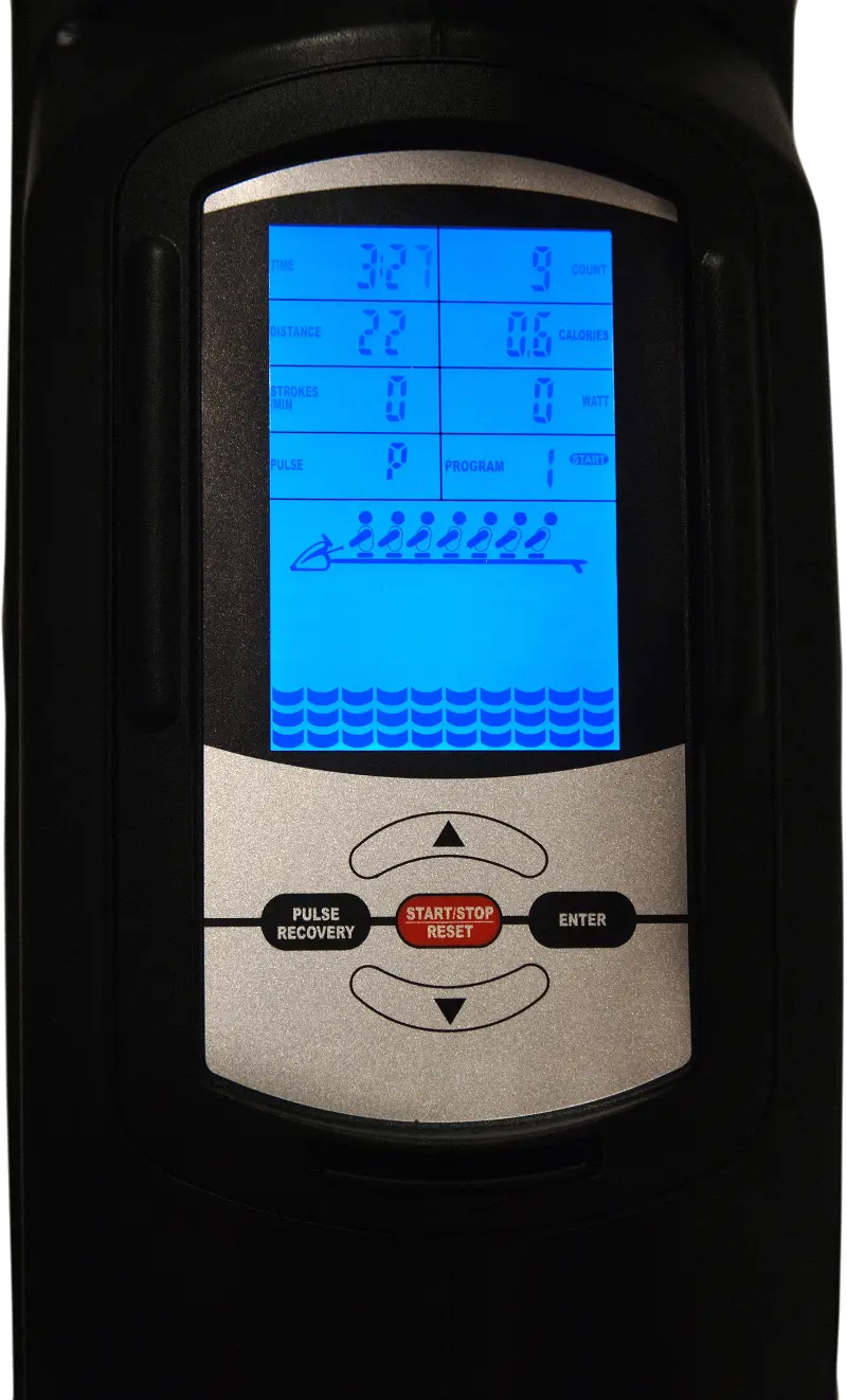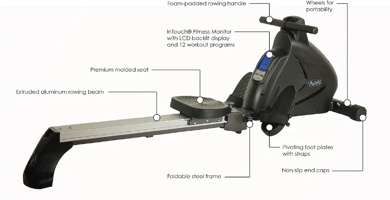 Indoor rowing is an efficient, effective total body workout that utilizes all major muscle groups including the back, legs, arms, abdominals, and buttocks. It is also one of the most effective low-impact aerobic exercises for increasing your metabolism for more efficient calorie and fat burning without the impact on your joints. The Avari Programmable Rowing Machine features 12 programs that can be monitored using the LCD backlit InTouch® Fitness Monitor. The included chest strap can be used during any program but is especially effective while using the target heart rate program. This rowing machine also features 7 preset programs that will automatically adjust the magnetic tension to maximize your cardiovascular workout without interruption. It has a molded seat and the extruded aluminum beam provides a smooth movement through the drive and recovery phases of your stroke. Indoor rowing is one of the best all-around activities for cardiovascular fitness and strength training.