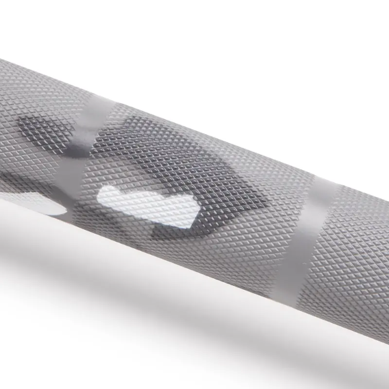 - Lighter knurling marks on the shaft of the Olympic bar are coated with ceramic, which increases friction between your hands and the bar, therefore improving overall grip