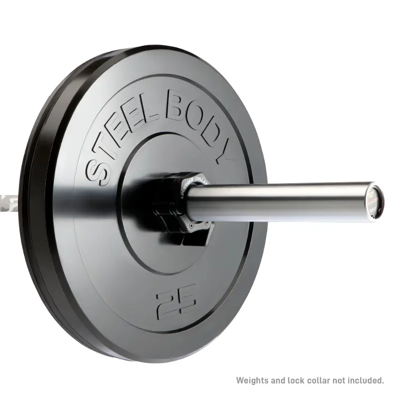 2' Steelbody Olympic barbell is a great tool and essential equipment to add to your everyday fitness and gym routine. This bar can accommodate significantly more weight than a standard bar, holding up to 1,500 lbs. It also features rotating sleeves to eliminate strain on the wrists, helping you stay steady and balanced during heavy lifts. This high quality weight lifting bar is ideal for strength training beginners and advanced users alike. Add this Olympic bar to your garage gym, and you won’t have to buy another for years to come!