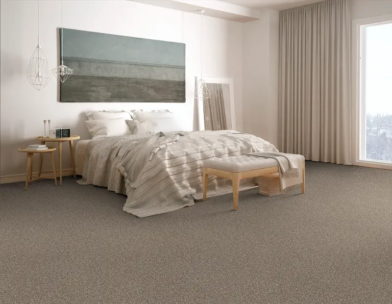 Texture construction carpet has long, crimped yarns for a versatile style that looks great in all kinds of homes. Multi-color textures create a casual look, while solid color styles are great in formal settings. The curling of the fiber reduces light reflectance, thus reducing the appearance of footprints. With a higher pile for a super-soft feel, it's no wonder that this is our most popular style.