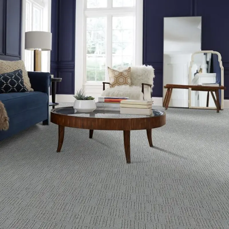 Pattern construction carpet is made with varying loop and cut heights for looks that range from bold graphic patterns to dramatic floral patterns to simply and understated traditional patterns. Patterned carpet is often tough and durable, offering good performance in areas that see a lot of activity. Patterned carpet also adds a dimension of texture within a room and hides traffic patterns.