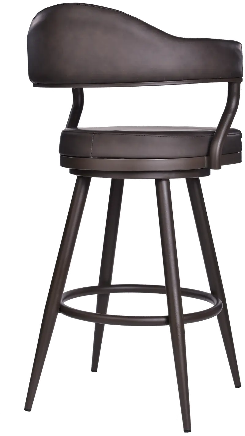 The strong frame is constructed from metal and its cool appeal is further accented by the soft faux leather upholstery. The open back allows for easy breathable seating and makes cleanup a breeze. Engaging with your guests has never been easier thanks to the 360-degree swivel function that adds convenience with its optimal mobility. Pull the Justin counter stool up to your kitchen island, peninsula counter, or home bar and enjoy its durability and aesthetic for many years to come.