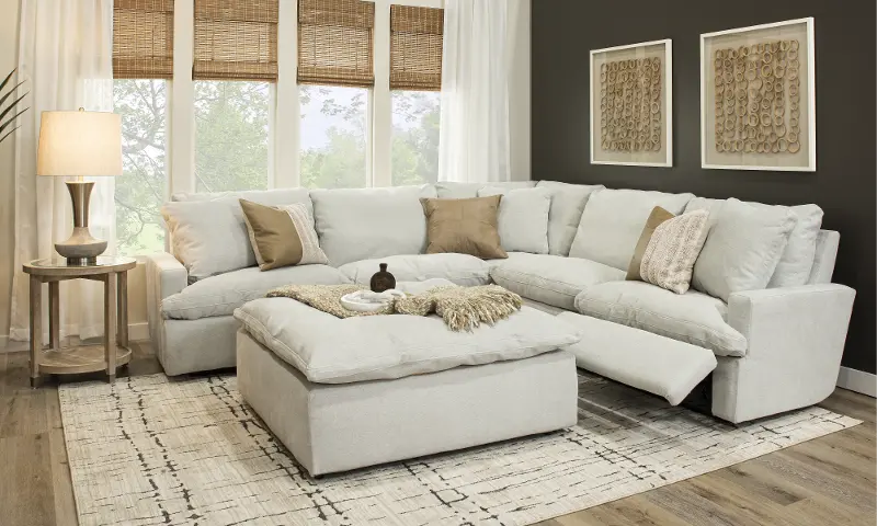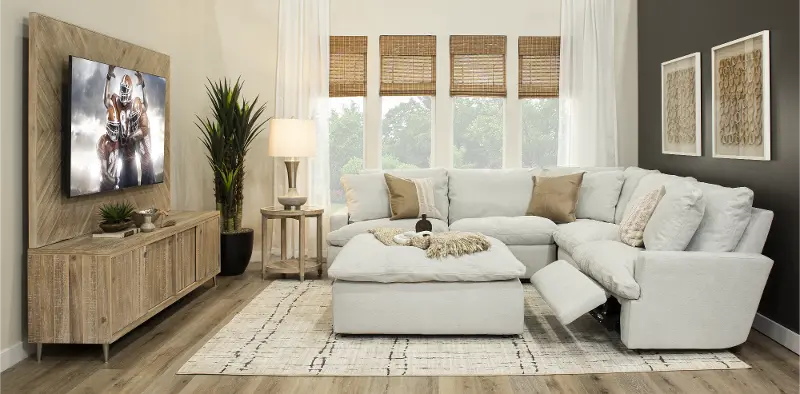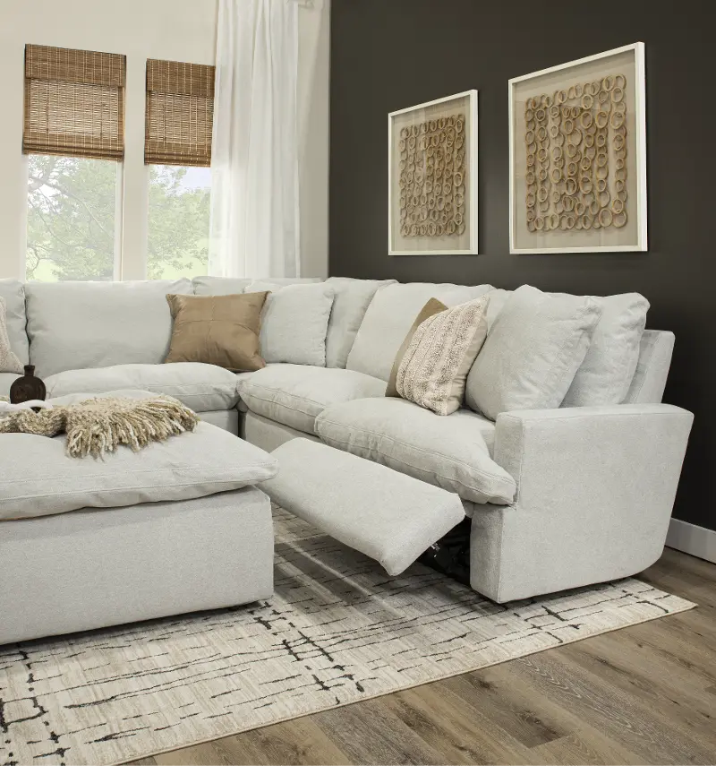 With its comfortable and relaxed "Shabby Chic" seat, it is perfect for lounging after a long day at work or while spending quality time with family and friends. The three power recliners provide added comfort, allowing you to fully relax and unwind. The three tone-on-tone toss pillows add a touch of luxurious style and added shape to the sectional, making it a great addition to any home. Whether you're entertaining guests or simply enjoying a quiet evening at home, this sectional is sure to enhance your daily life.