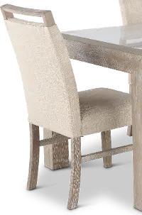 The Nina collection will add a chic, unfussy vibe to your dining space! Sturdily crafted, this side chair features a brushed light gray wood frame paired with a beige upholstered seat and backrest. Its simple silhouette and inviting contemporary charm will be a welcomed addition to your home.