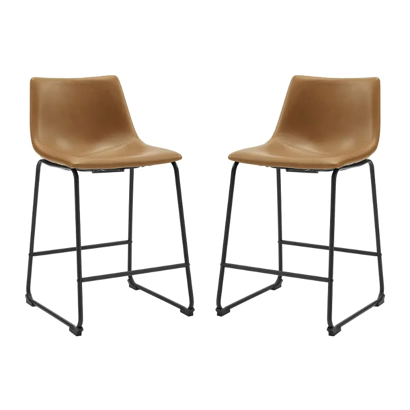 They will be the perfect addition to your eating space as they work great for everyday use. The synthetic leather is soft to the touch, while the curved seating provides comfort. Supported with powder-coated steel legs for a durable, long lasting design, these counter stools look best in an urban industrial styled space but also coordinate well with many other popular interior styles.