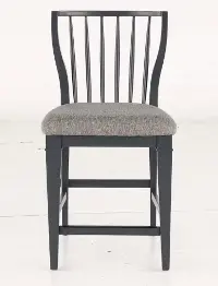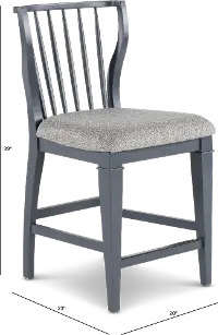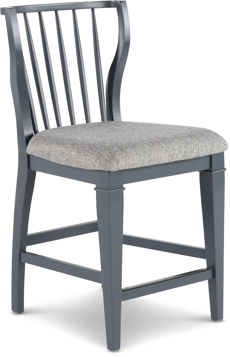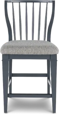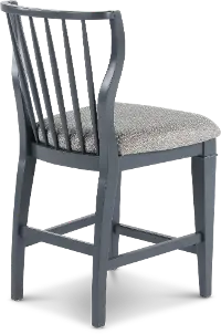 This counter-height stool artfully blends soft curves with clean lines and features an inviting upholstered seat, backrest, and a neutral graphite gray finish.