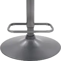 Each barstool features a sleek dark grey steel pedestal base. The vertical tufted high back and plush seat is wrapped in a durable upholstered fabric and filled with foam for cushioned support. An adjustable height feature and a footrest keep you comfortable while you sit. Coming in an armless design these barstools not only provide non-restrictive seating, but also a 360-swivel feature that easily lets you move from one conversation to the next.