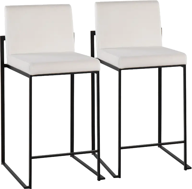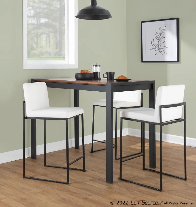 Modern elegance at its finest, the Fuji High Back Counter Stool by LumiSource features an extra-wide (and extra comfortable) upholstered seat, a high padded backrest, and a stylish metal frame.