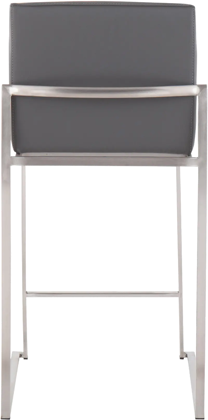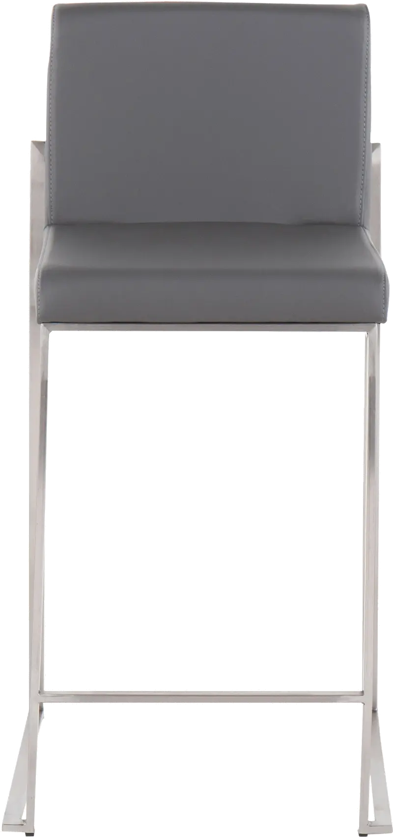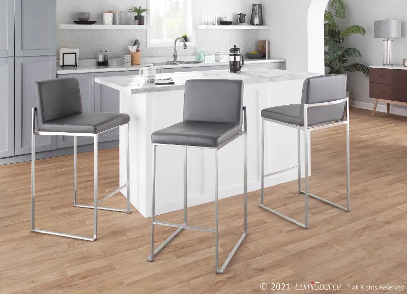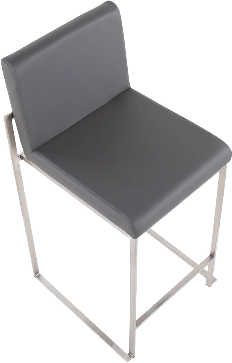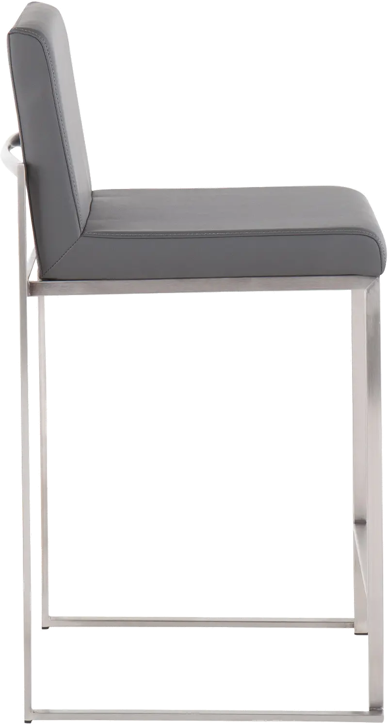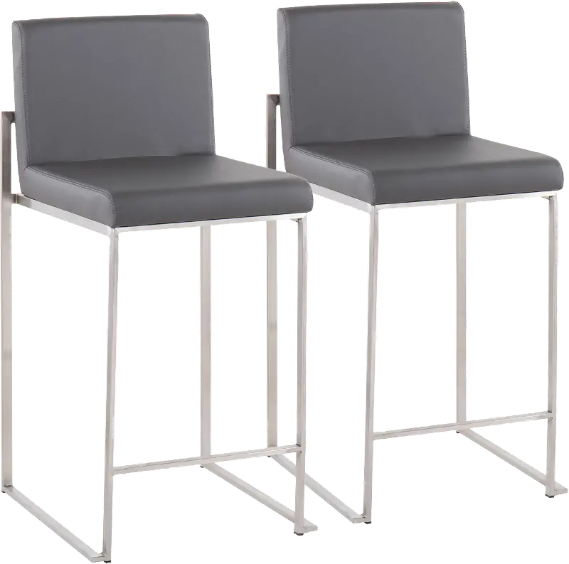 Fuji High Back Stainless & Gray Faux Leather Counter Stools, Set of 2