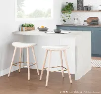They meet the ultimate style in the Saddle Counter Stool by LumiSource. With a generous contoured upholstered seat atop tapered wood legs and metal footrest, this fixed-base stool puts you in the saddle. Available in a variety of finishes and upholstery options.