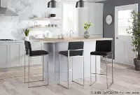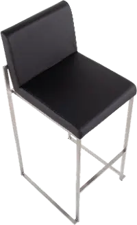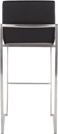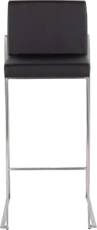 Fuji High Back Stainless & Black Faux Leather Barstools, Set of 2