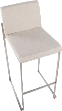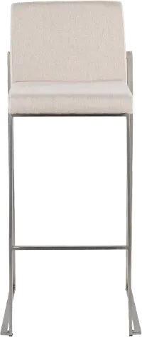 Fuji High Back Stainless & Beige Barstools, Set of 2